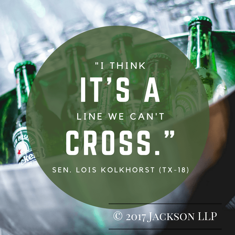 A Texas state senator proposes a bill to stop booze in the waiting room.