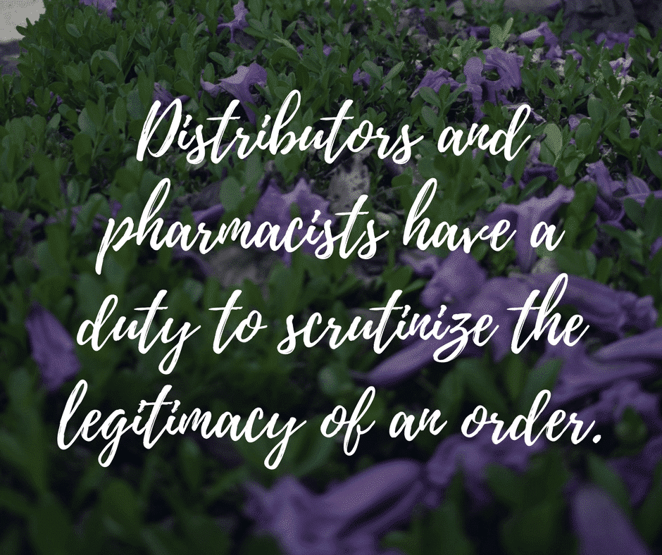 The Controlled Substances Act imposes a duty on pharmaceutical distributors to guard against illicit drug diversion by monitoring for suspicious ordering patterns; to do this, they must verify the legitimacy of their customers’ orders prior to fulfilling them. The DEA educates distributors about how regulatory changes can affect downstream demand for drugs and provides them with detailed information about their customers’ purchasing trends (volume and frequency of orders, percentage of prescriptions that are for controlled substances, etc.). Federal law similarly requires pharmacists to refrain from dispensing a prescription of questionable or suspicious origin – and pharmacists who fill them anyway (without verifying that they’re supported by legitimate medical need) can be criminally prosecuted. At the pharmacist level, these protections aim to prevent “doctor shoppers,” or patients who obtain multiple opioid prescriptions, from filling multiple orders.