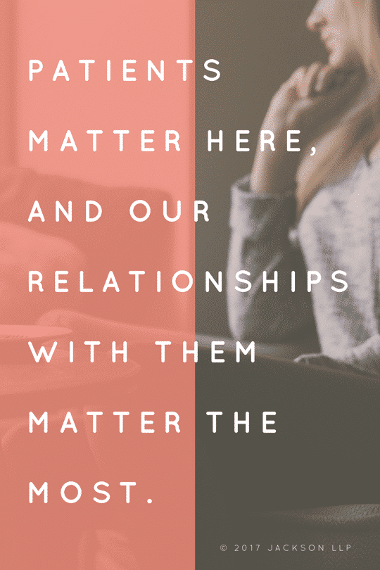 Patients matter here, and our relationships with them matter the most. We listen, we reflect patients’ values in treatment, we harness the full scope of our professional expertise to help them, and we refer out when necessary. We build relationships here, and it’s those relationships that best serve patients, that create enriching professional lives for us, and that move healthcare forward.