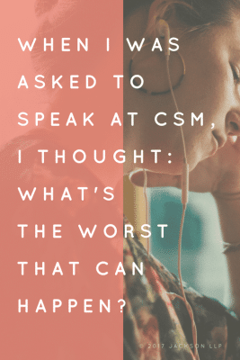 When I spoke at CSM, I introduced myself as a “recovering lawyer.” Until that point, my law firm jobs had been largely incompatible with self-care, so I had quit my high-brow job and gone to work for a dog daycare. But in the weeks following CSM, physical therapists started asking for my help with legal or compliance issues, and soon the demand for my help was greater than I could handle alone. My husband, Connor, left his law firm job, and we founded Jackson LLP, a healthcare law firm in Illinois.