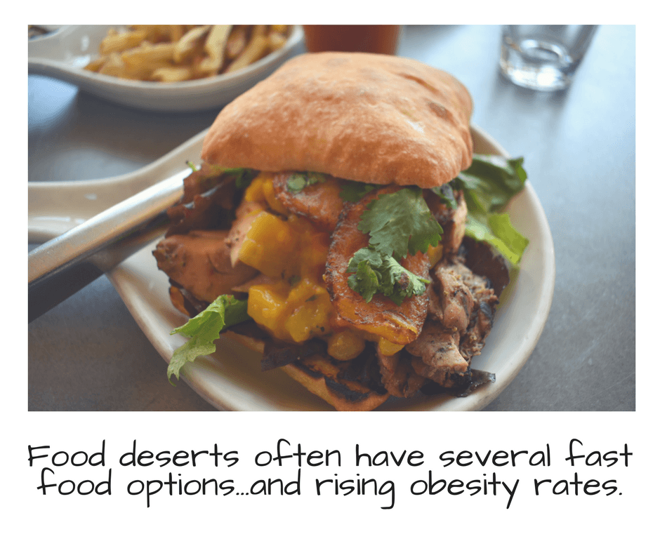 A food desert is a geographic area that lacks fresh fruit, vegetables, and other whole foods. These arise from an absence of grocery stores, farmers’ markets, and healthy food providers, and the United States is full of them (1). This problem is linked to obesity, poor diet choices, and hunger.