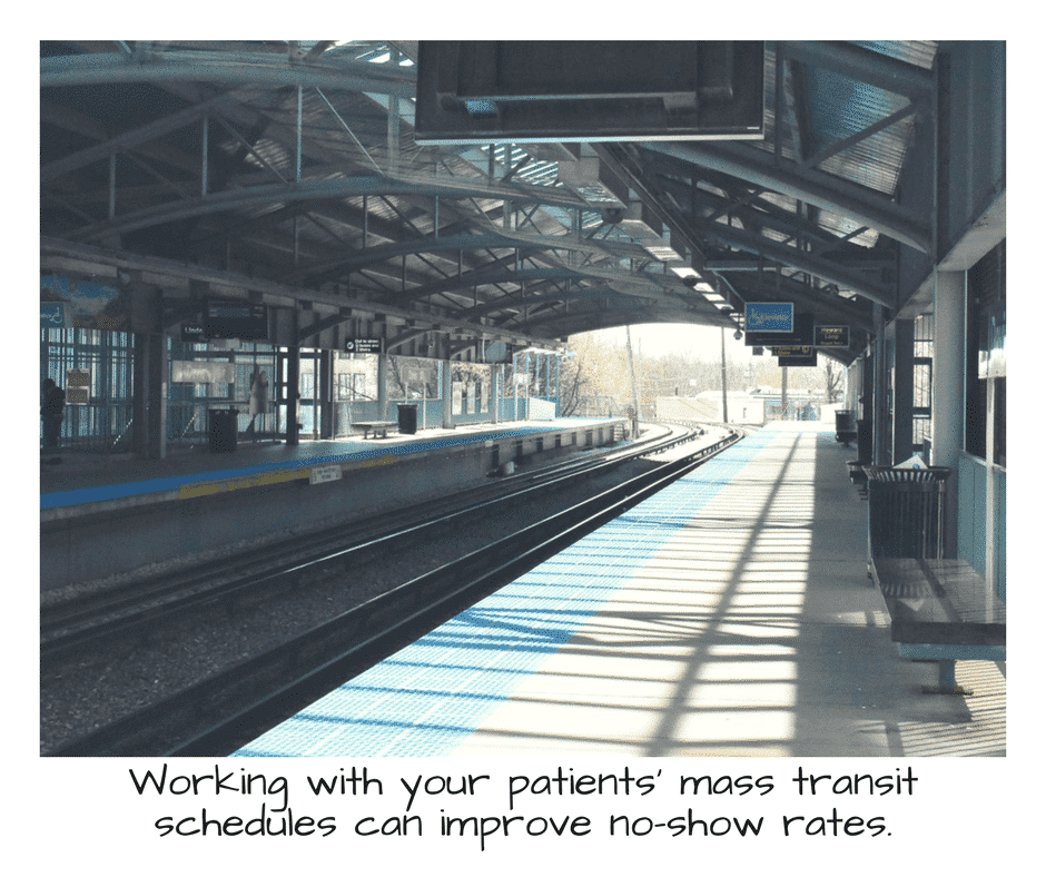 One study found that poor appointment scheduling procedures are responsible for a third of missed appointments – that is, the patients weren’t asked about their preferred appointment times. (2) Evening appointments, when public transportation is less available, saw the highest no-show rates. (2) Both of these practices have easy fixes: Ask patients for preferred appointment times and be mindful of transportation schedules, especially for evening appointments.